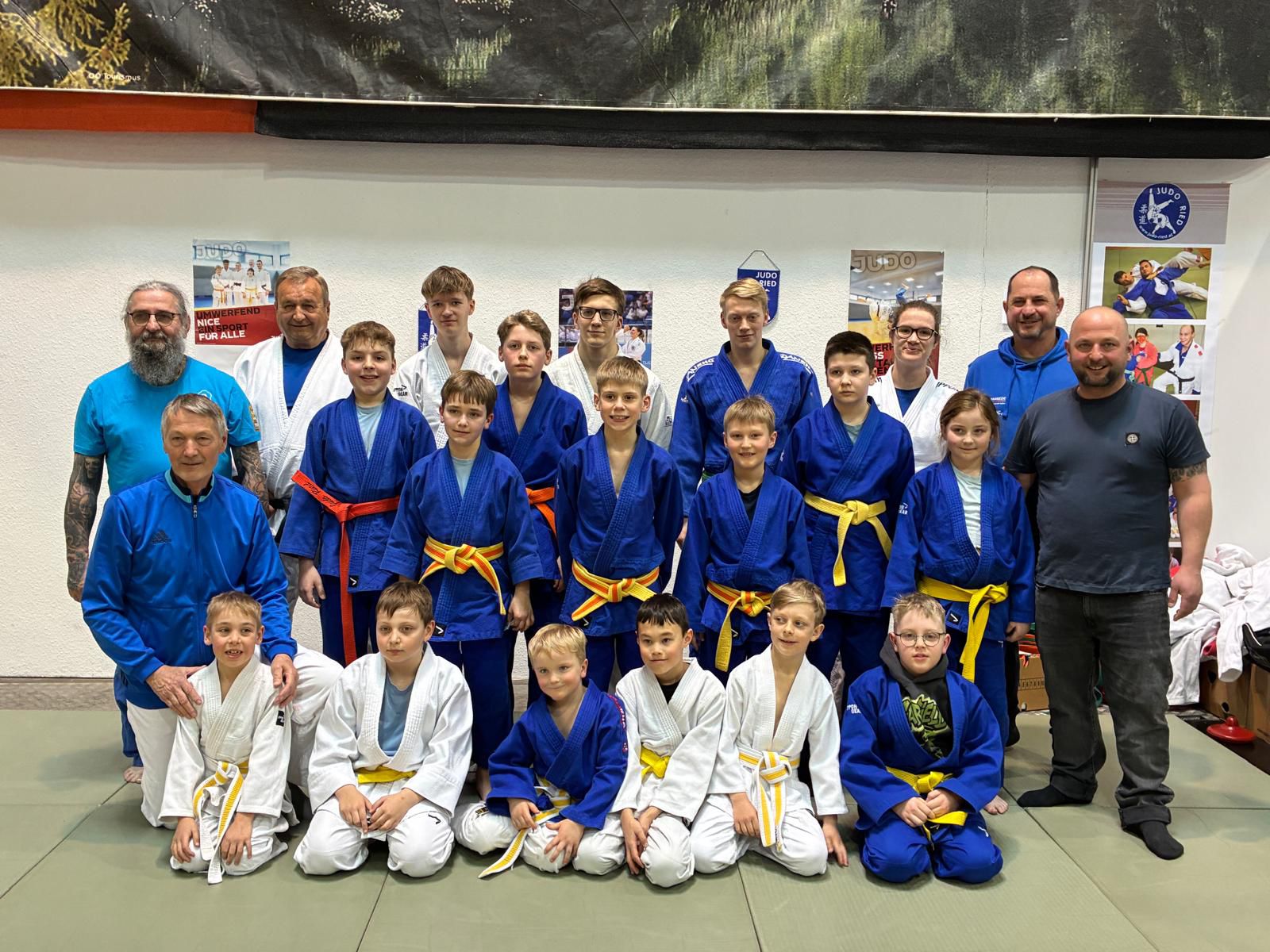 Bei der Gürtelprüfung des JV Ried am 27. März 2026 erreichten alle 58 angetretenen Judoka die angestrebten Gürtel. Die volle Halle und viele stolze Eltern zeigten die große Unterstützung für
